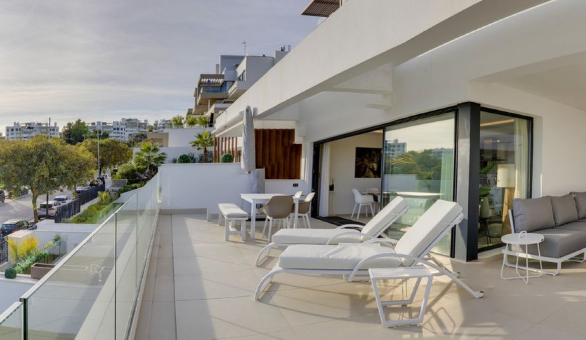 One of the outstanding features of this property is the exceptionally large private terrace, ideal for outdoor dining, entertaining, or relaxing in the Mediterranean climate.