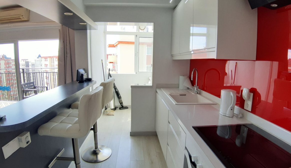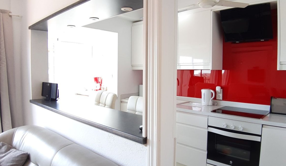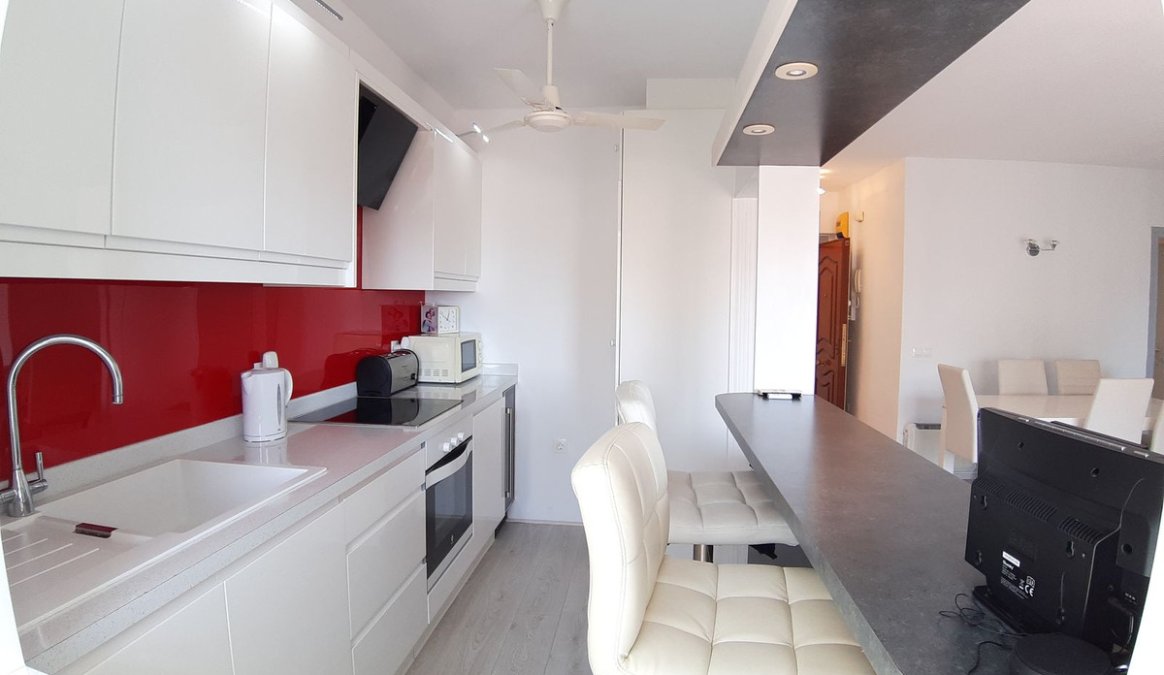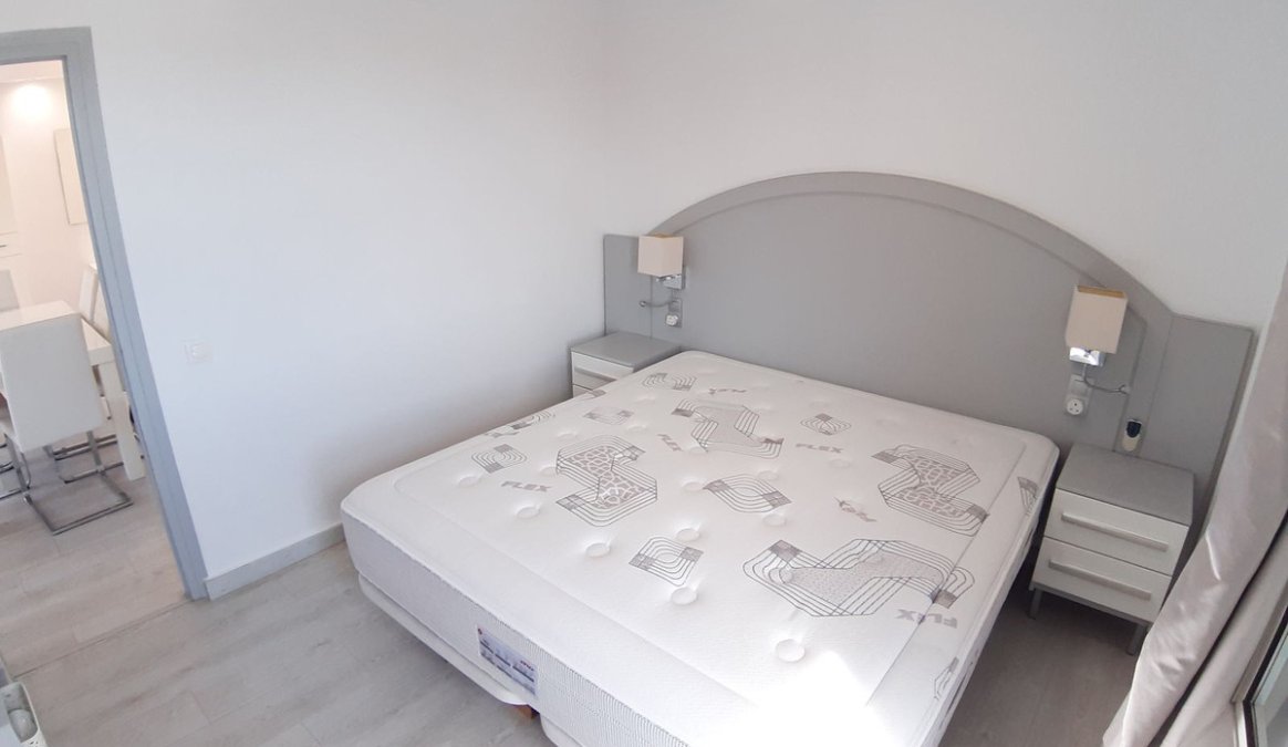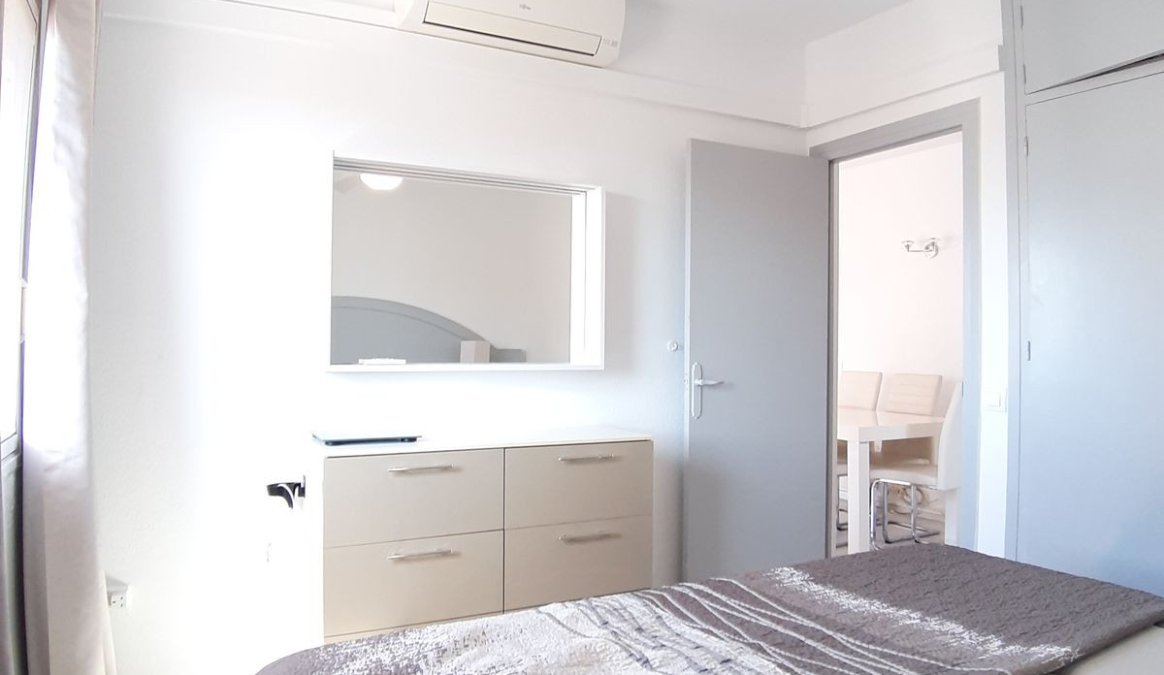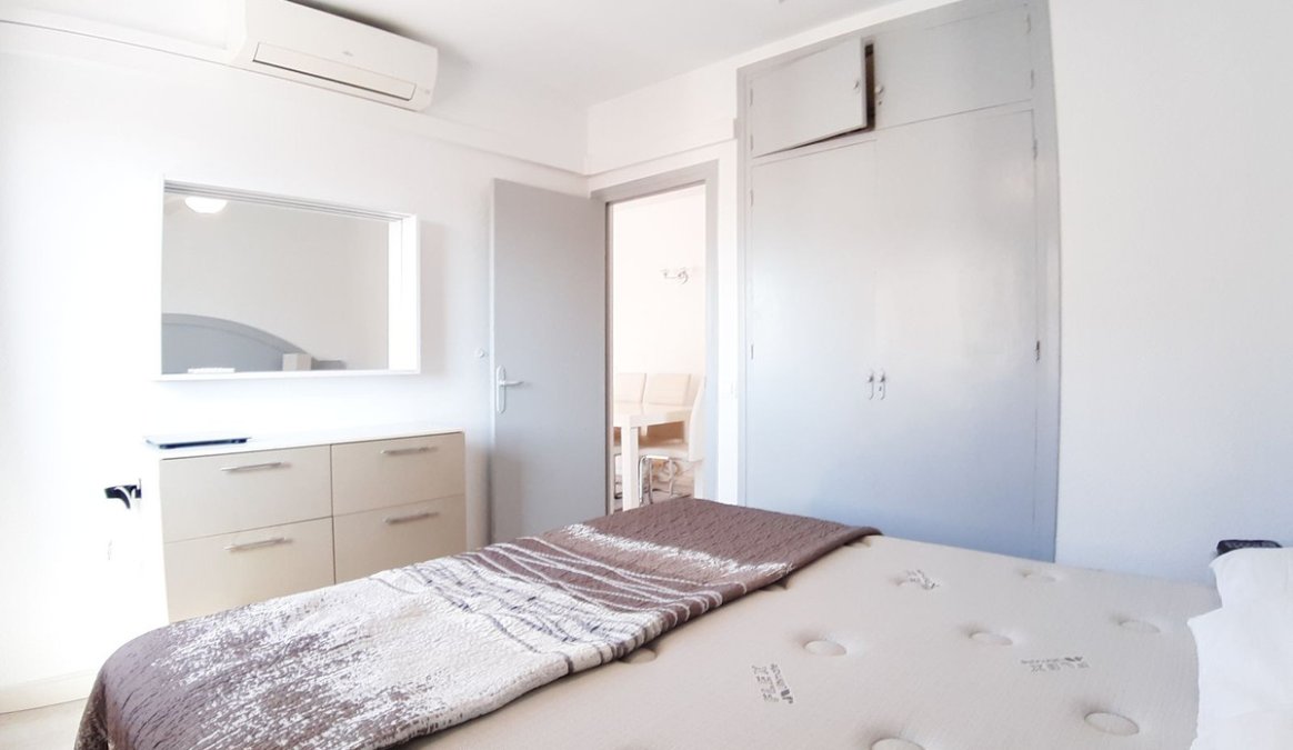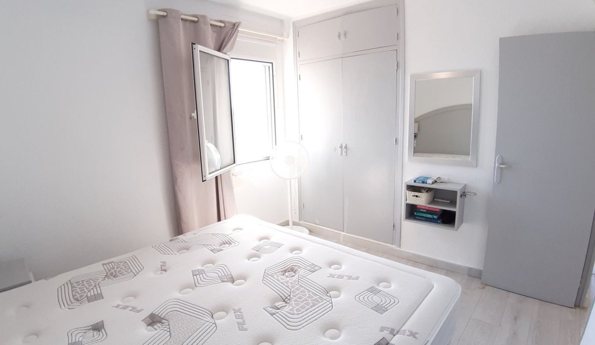The property features 2 bedrooms, 1 bathroom, and a cozy fully equipped open-plan kitchen that integrates perfectly with the living-dining room, creating a functional and modern space. From its terrace, you can enjoy pleasant open views of the city and the sea, with a south-facing orientation that guarantees natural light throughout the day.