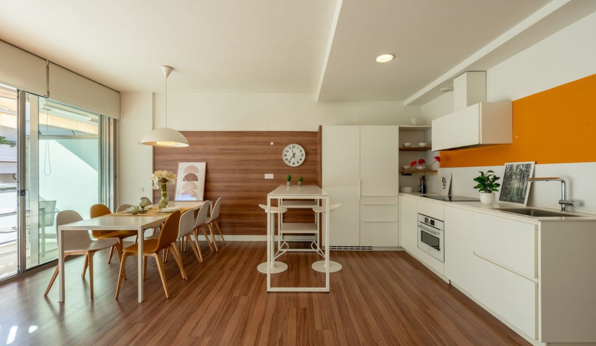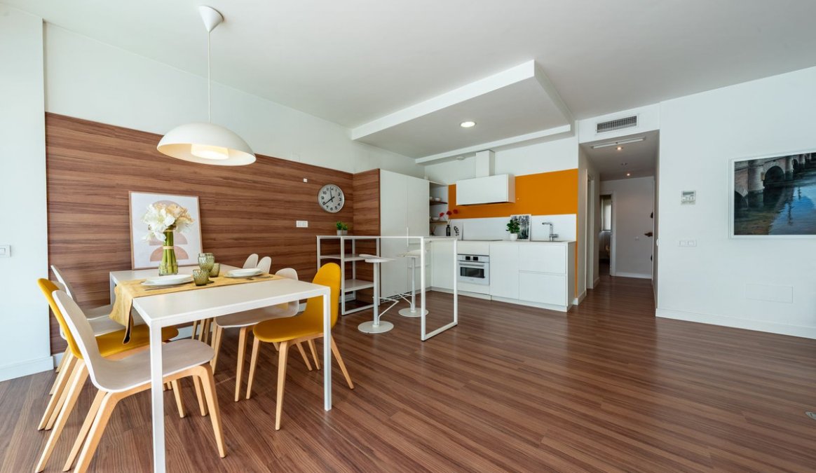 The bright and spacious living-dining room incorporates a modern, fully fitted and equipped open-plan kitchen, creating a warm and practical environment for daily living. From this area, there is access to a pleasant 11 mΒ² covered terrace with urban views, ideal for enjoying the Mediterranean climate all year round.