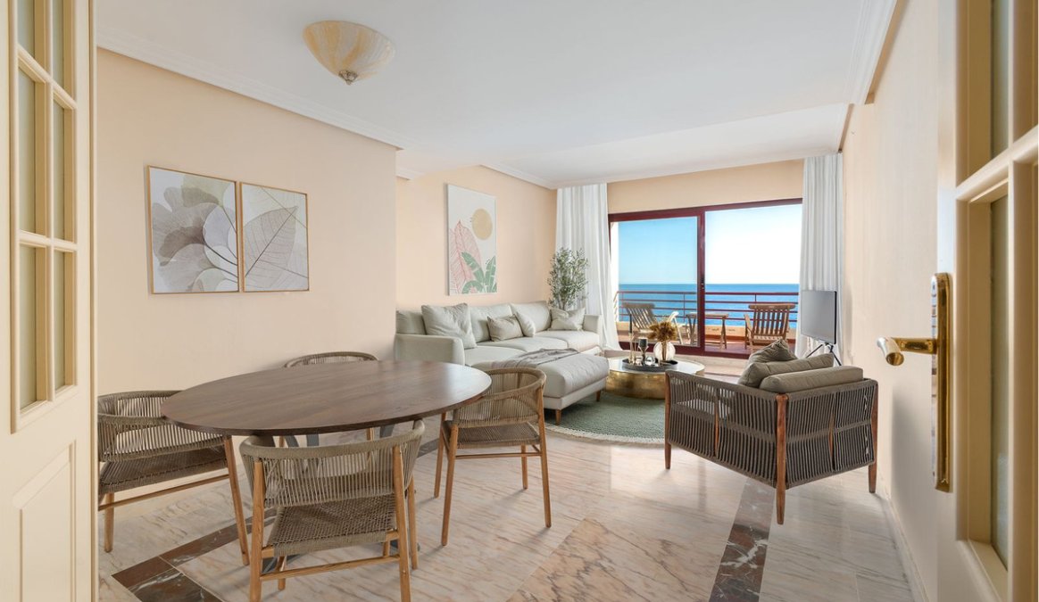 Stunning Frontline Beach 3-Bedroom Apartment in a prime location Torrequebrada, offering panoramic and unobstructed views of the Mediterranean Sea.