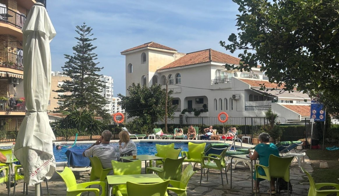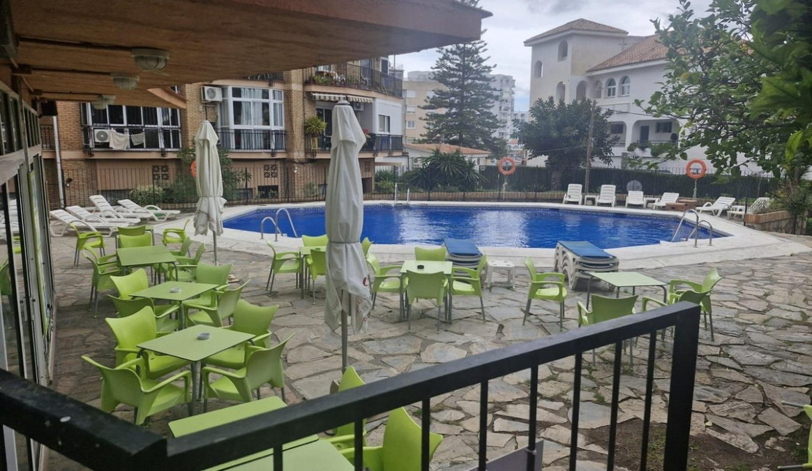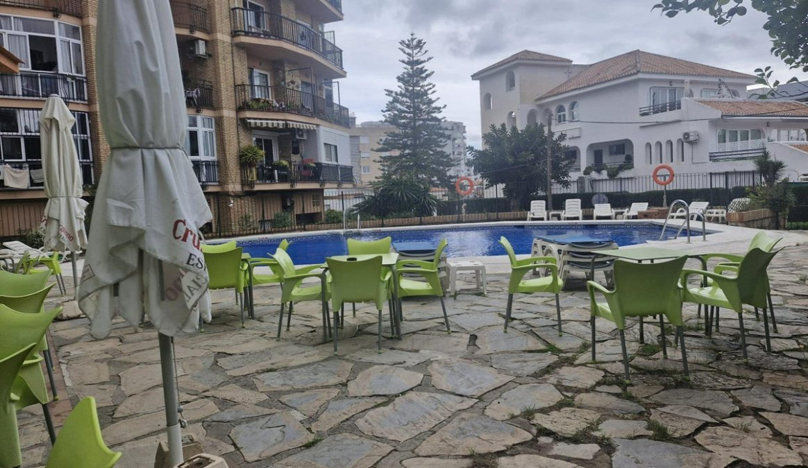 For sale is a 40 square meter studio apartment located on the fifth floor of a building with an elevator, within a gated residential complex that features a communal swimming pool and gardens, in one of the most popular and touristic areas of the Costa del Sol. The property is exterior, in good condition, and includes built in wardrobes and a full bathroom, with a practical layout that makes the most of the available space.