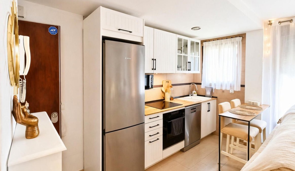 Located on the first floor, the apartment enjoys easy access and is surrounded by all essential amenities. Street parking is available, and everything you need is within walking distance: just 5 minutes to Mercadona, less than 5 minutes to a local athletic club, 10 minutes to Parque de la Paloma, 5 minutes to the train station, and only 15 minutes on foot to the beach.