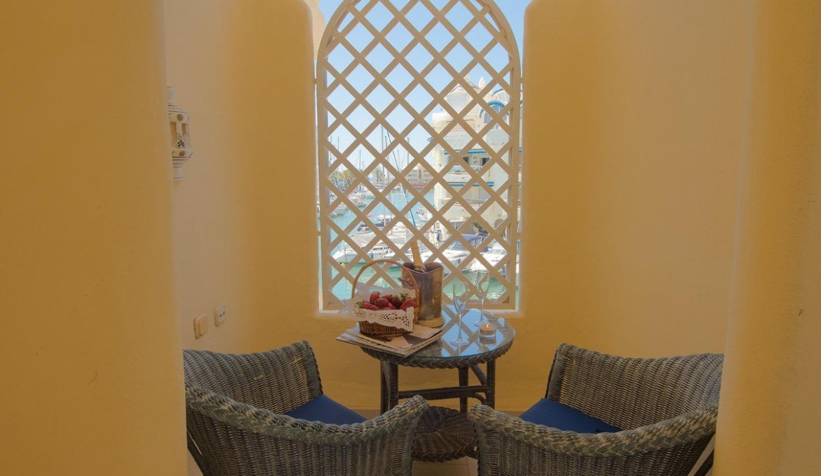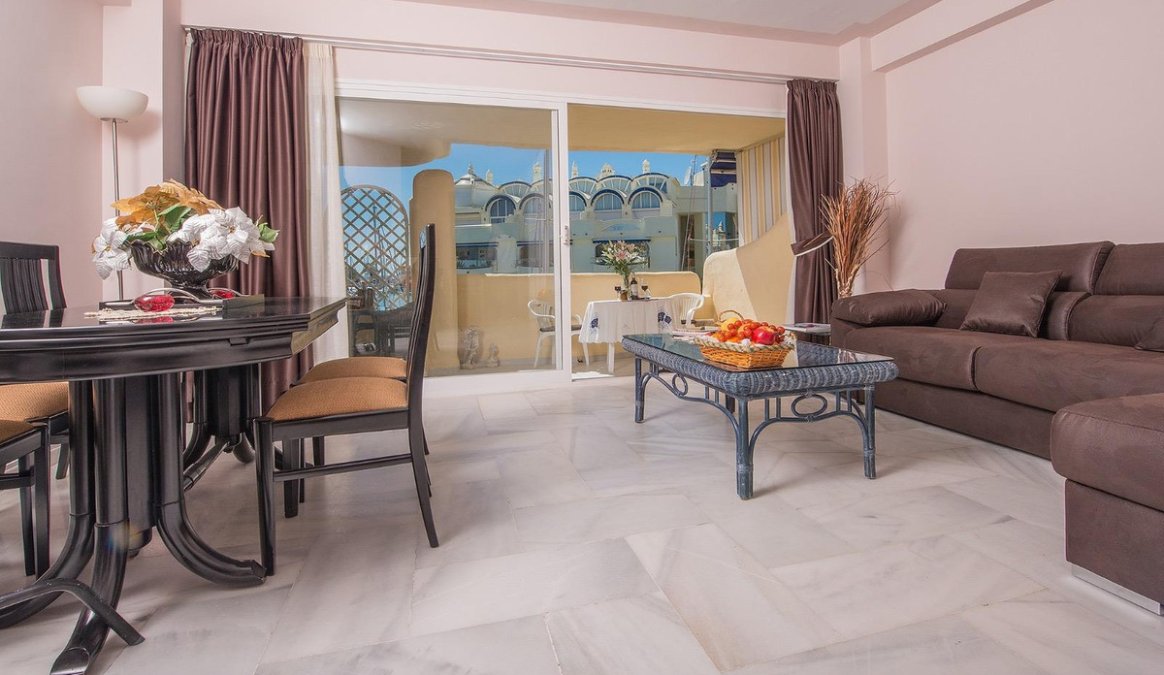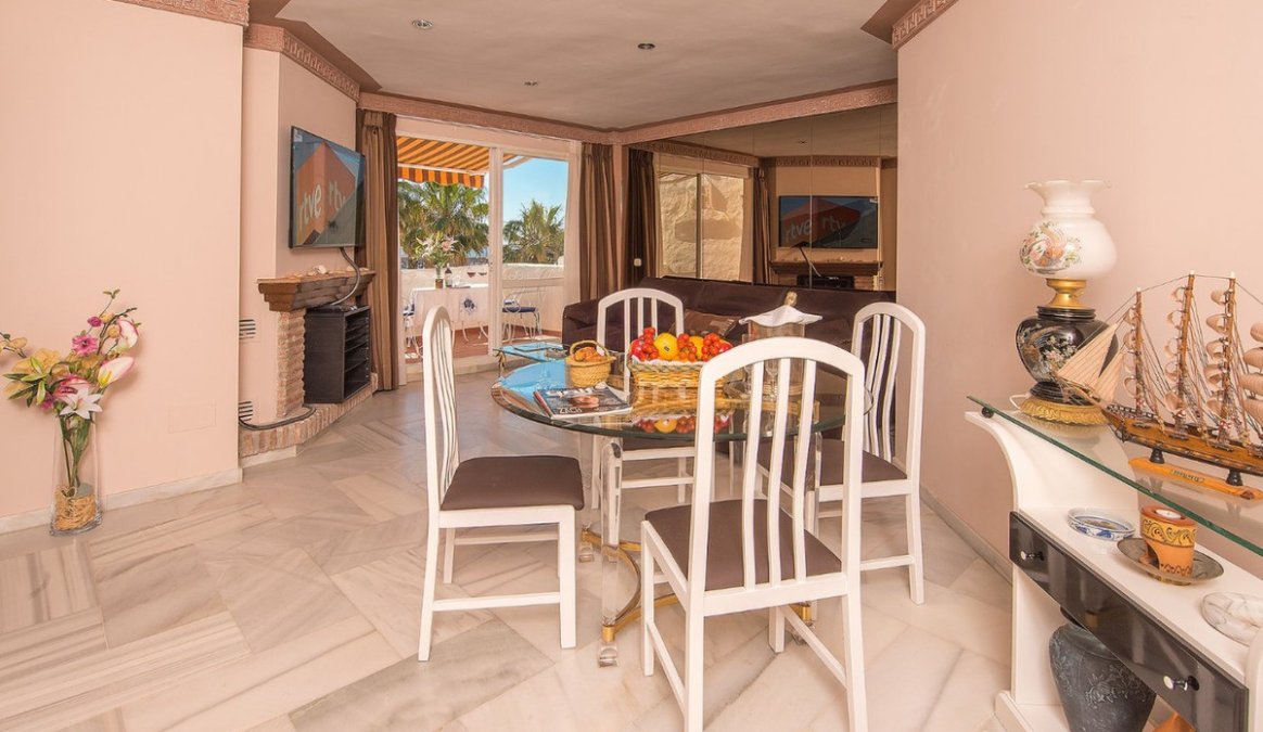 Beautiful penthouse in the popular Puerto Marina, wonderful location overlooking the marina with boats. The property consists of two bedrooms, two bathrooms, kitchen and living room connected to a spacious terrace with room for chairs and tables so you can enjoy the view with your morning coffee. The bedrooms have private balconies and fitted wardrobes. Air conditioning system and central heating. It is sold fully furnished. It has a tourist license, high return on investment! The building has a new elevator.
