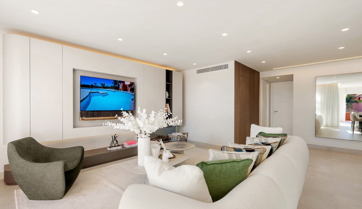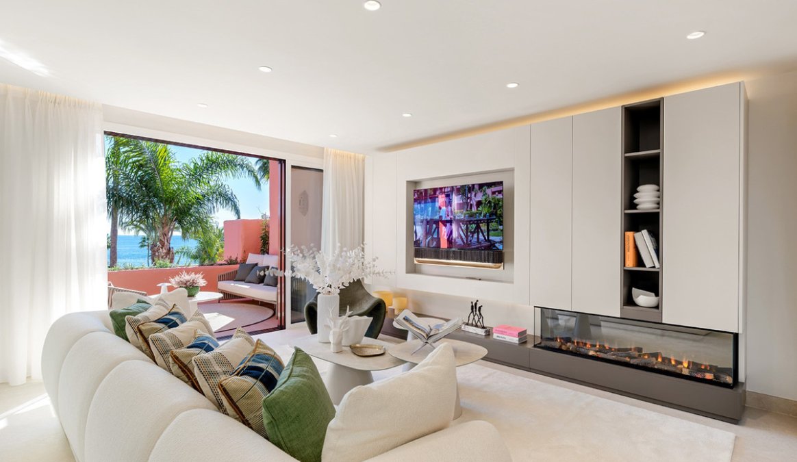 The property boasts a built area of 163mΒ² and an impressive 96mΒ² terrace with panoramic views of the sea, the communal pool, the gardens, and the surroundings. It features 3 spacious bedrooms, 2 full bathrooms, an elegant living room with fireplace and dining area, air conditioning, and underfloor heating throughout the property to maximize comfort all year round. It is delivered fully furnished, ready to move in.