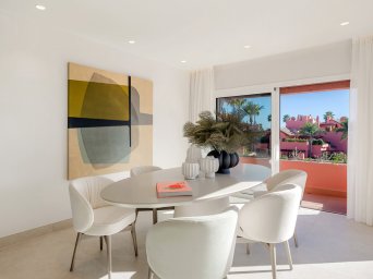 This luxury duplex penthouse is located in the exclusive development of Cabo Bermejo, in the eastern area of Estepona. With a privileged frontline beach location and easy access to all amenities, this property represents a unique opportunity for those seeking a sophisticated and comfortable home by the sea.