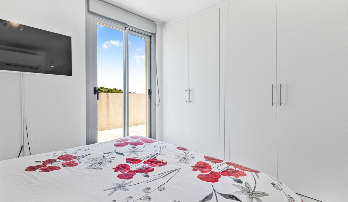 An internal staircase leads to the upper level, where you will find the third bedroom, bathroom and direct access to a generous solarium. This outdoor space enjoys all day sun and offers stunning 360 degree views. Additional features include air conditioning, shutters, double glazing, a reinforced security door, an underground parking space and a storage room.