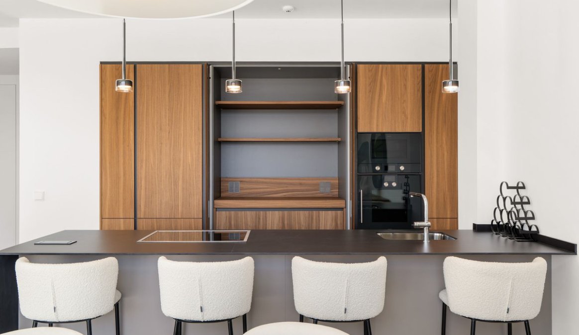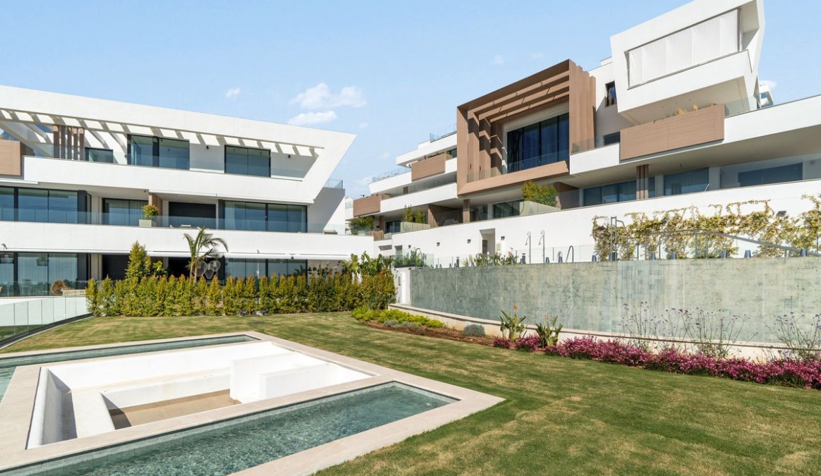 The property is located in a modern, boutique development that offers its residents two communal pools and an atmospheric lounge area surrounded by greenery and tranquillity.