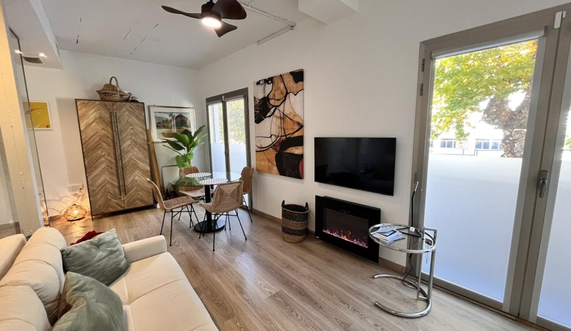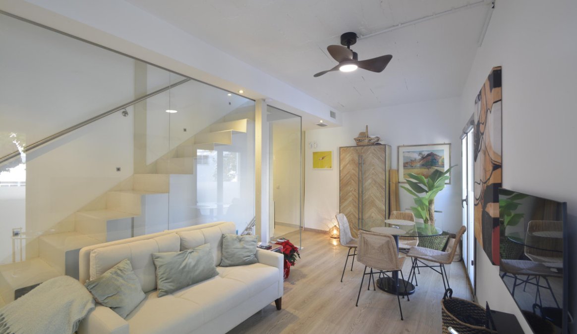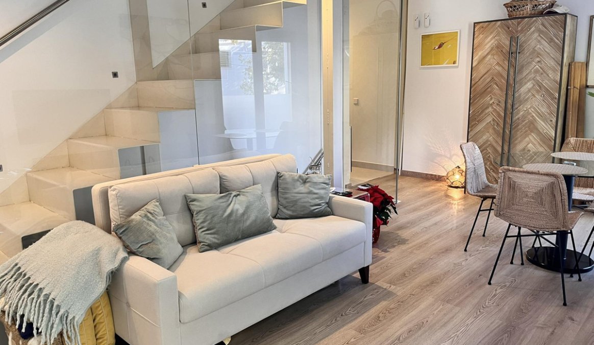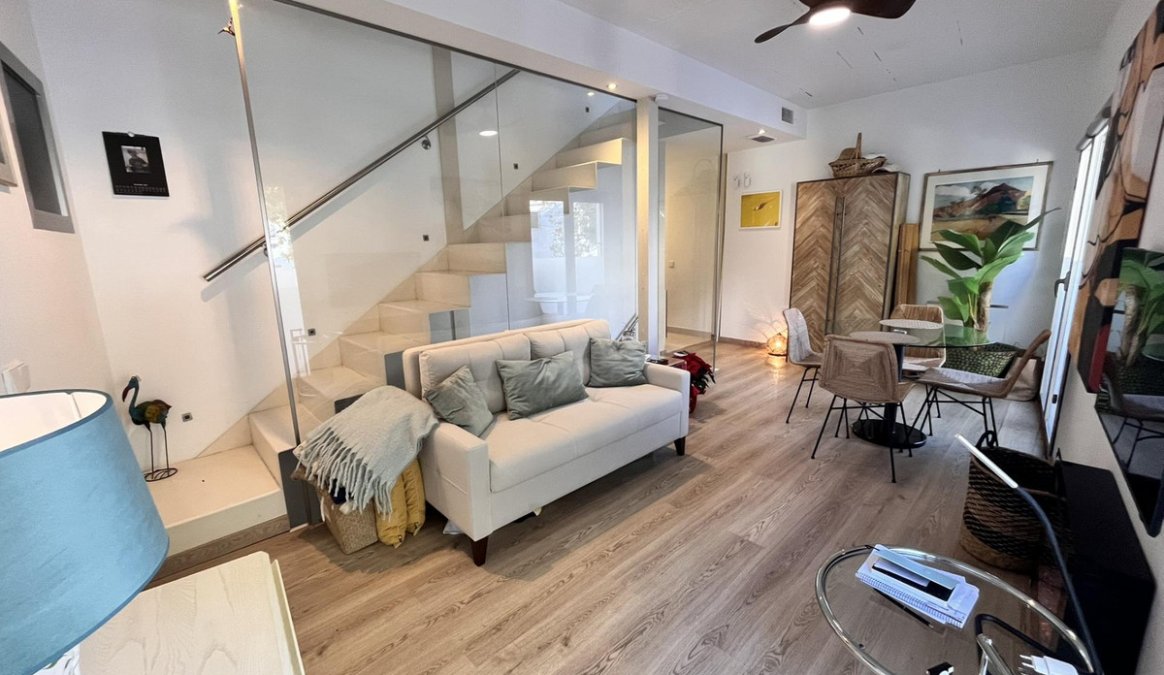 Fantastic duplex apartment in Marbella\'s Old Town, completely renovated. The only flat in the building without neighbours. Ideal for owners with dogs. This very bright apartment has a living-dining room with hot/cold air conditioning and an electric fireplace with LED technology and large windows that provide plenty of light with high ceilings, a fitted and equipped kitchen, and on the second floor there is a bedroom with a full bathroom and a terrace. Walking distance to all amenities that make your daily life more comfortable without the need for a vehicle. A step from Marbella Old Town, where you can stroll through the city\'s iconic narrow streets, and just 12 minutes from Marbella\'s best beaches and the promenade.