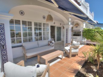 This absolutely superb, renovated semi detached house has the most spectacular panoramic sea views. Situated in a quiet cut de sacthe upper part of El Chaparral, and just a short drive to La Cala de Mijas, the house shares a pool with just 3 other houses. The current owners have completely transformed the house with a full renovation, and even the fabulous designer furniture could be included in the price, depending on the offer.