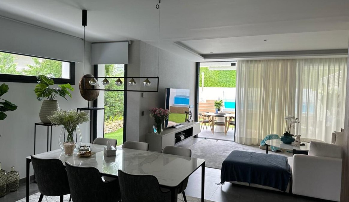 This stylish semi-detached villa is located in an exclusive gated community just a short walk from the beach and only minutes away from Puerto BanΓΊs.